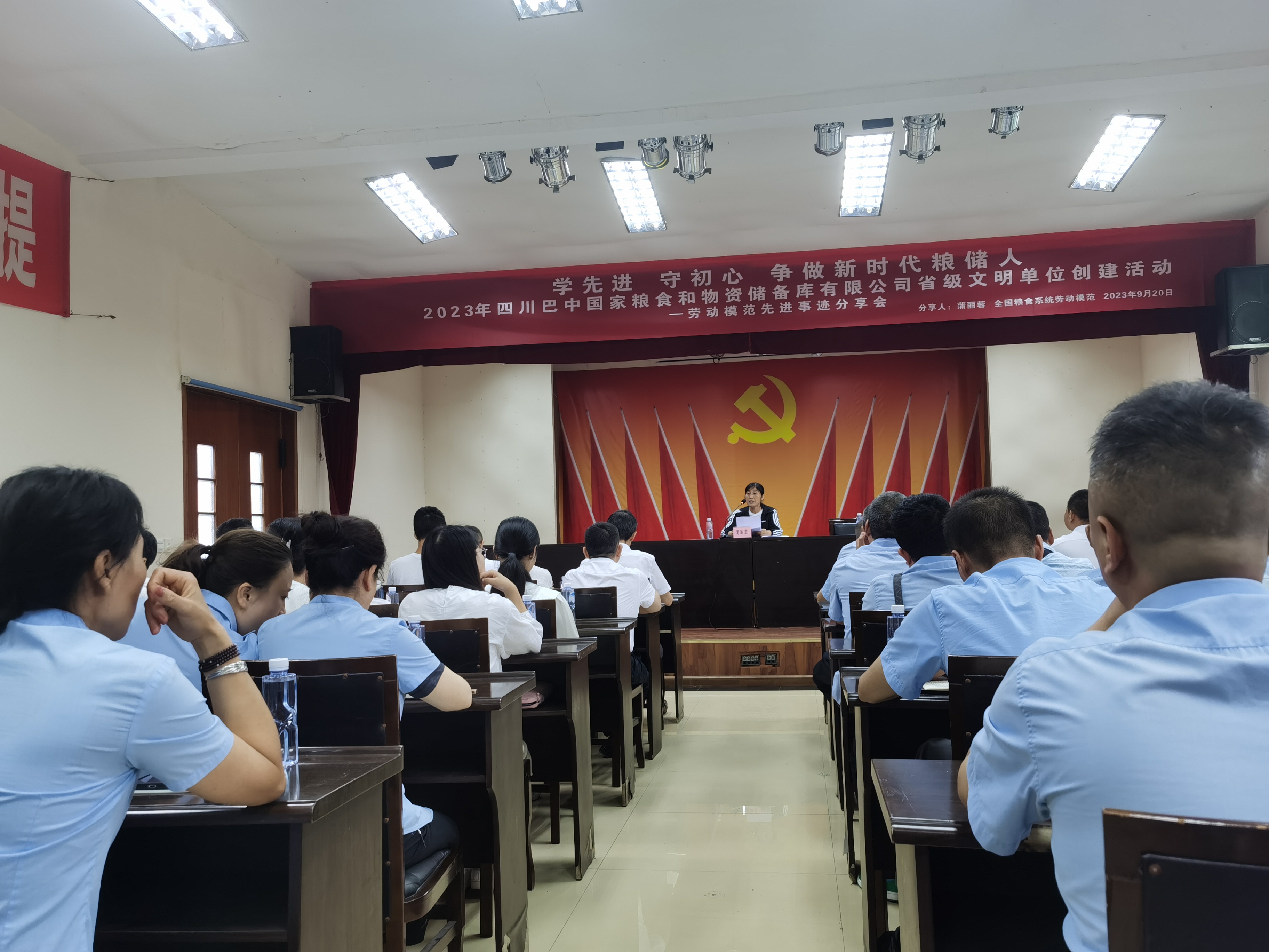 宣講會(huì )上,蒲麗蓉同志從“一段經(jīng)歷,終身記憶;一次選擇,終身堅守;一個(gè)獎杯,終身鞭策;一次代表,終身表率”四個(gè)方面分享了她的生活閱歷和工作經(jīng)歷及參加黨的二十大的所見(jiàn)所聞所感。她在糧食戰線(xiàn)工作的26年間,始終秉承“寧流千滴汗,不損一粒糧”的初心使命,用忠誠、擔當、奉獻持續擦亮共產(chǎn)黨員的底色,盡職盡責、勤儉奉獻。宣講結束,蒲麗蓉同志深入儲糧倉間,與公司保管員熱情分享她的管糧守糧經(jīng)驗,對提出的問(wèn)題一一答疑解惑,為公司安全儲糧提供了寶貴經(jīng)驗。